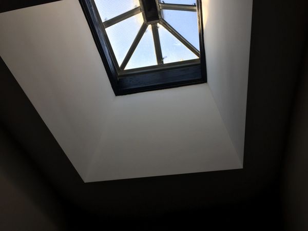 Level 5 finish is recommended for areas where severe lighting conditions exist and areas that are to receive gloss, semi-gloss, enamel or non-textured flat paints. Level 5 requires a thin skim coat of joint compound, or material manufactured especially for this purpose, is applied to the entire surface. A skim coat of joint compound is intended to conceal small imperfections in joints and on the surface of the gypsum board to help conceal joints and create the appearance of flatness. A skim coat will also smooth the texture of the paper, minimize differences in surface porosity, and create a more uniform surface to which the final decoration can be applied. The Level 5 finish is required to achieve the highest degree of quality finish